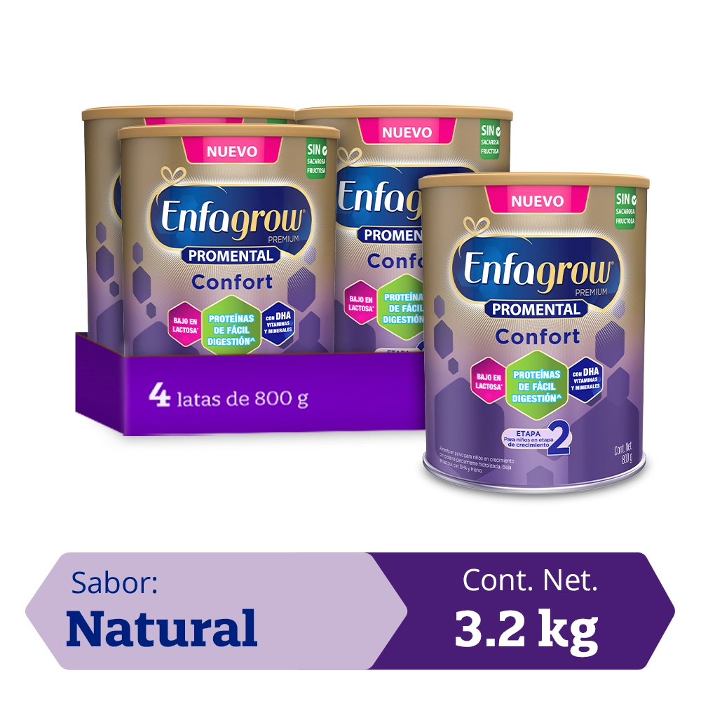 Enfagrow® Confort NO contiene sacarosa, ni fructosa.