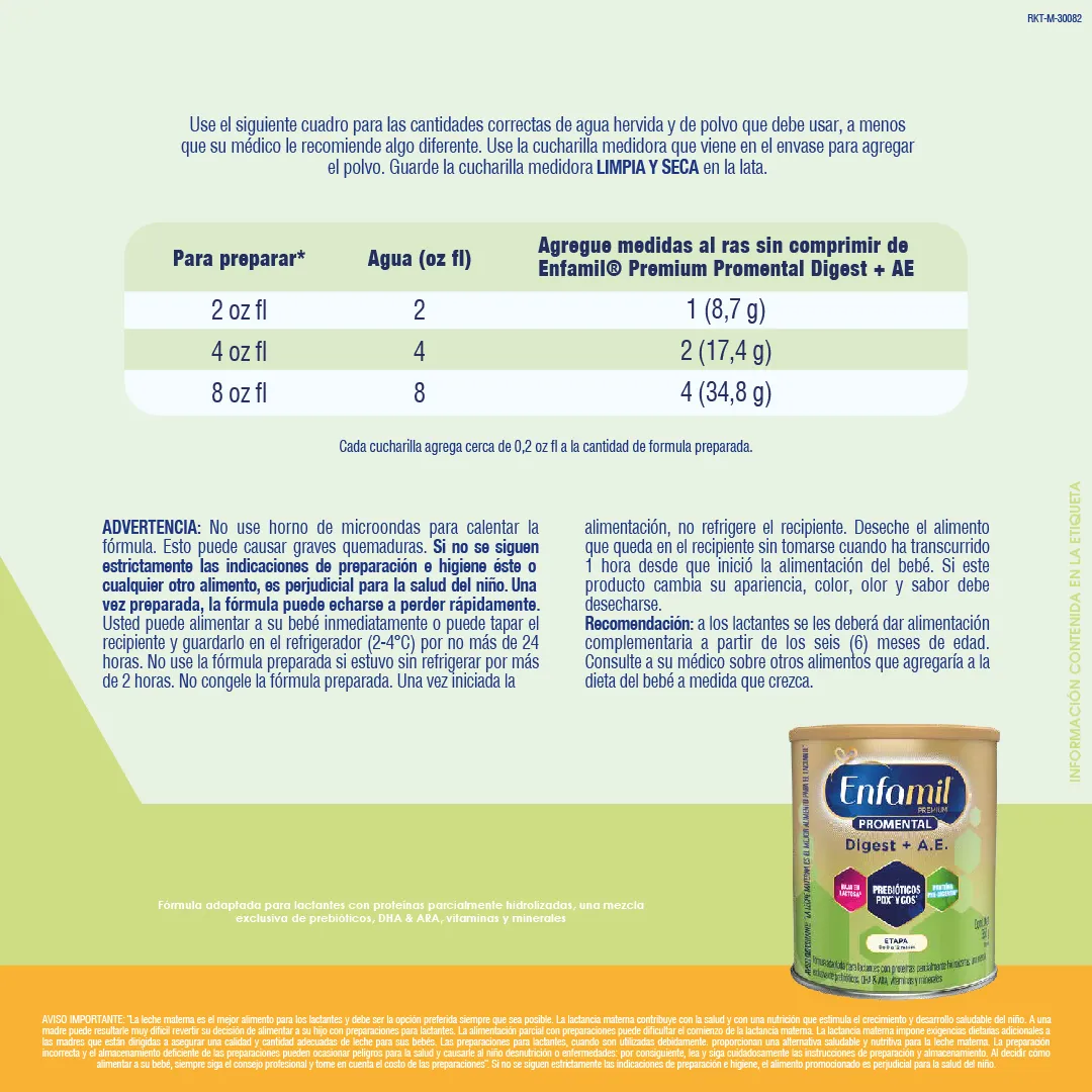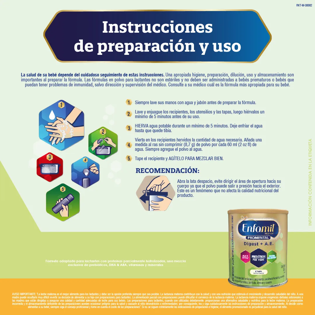 - Enfamil® Premium Digest+AE es una fórmula que contiene una mezcla exclusiva de prebióticos para ayudar a promover heces suaves e incrementar la frecuencia de las evacuaciones.