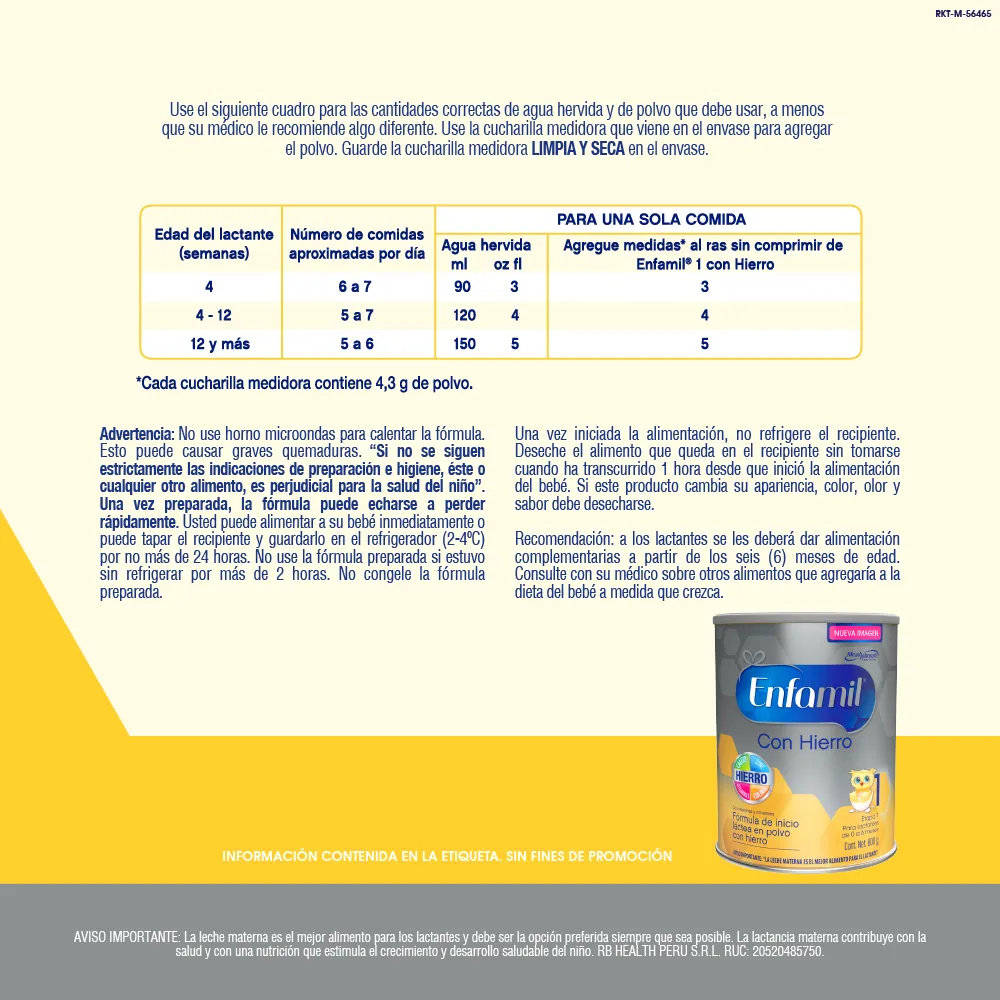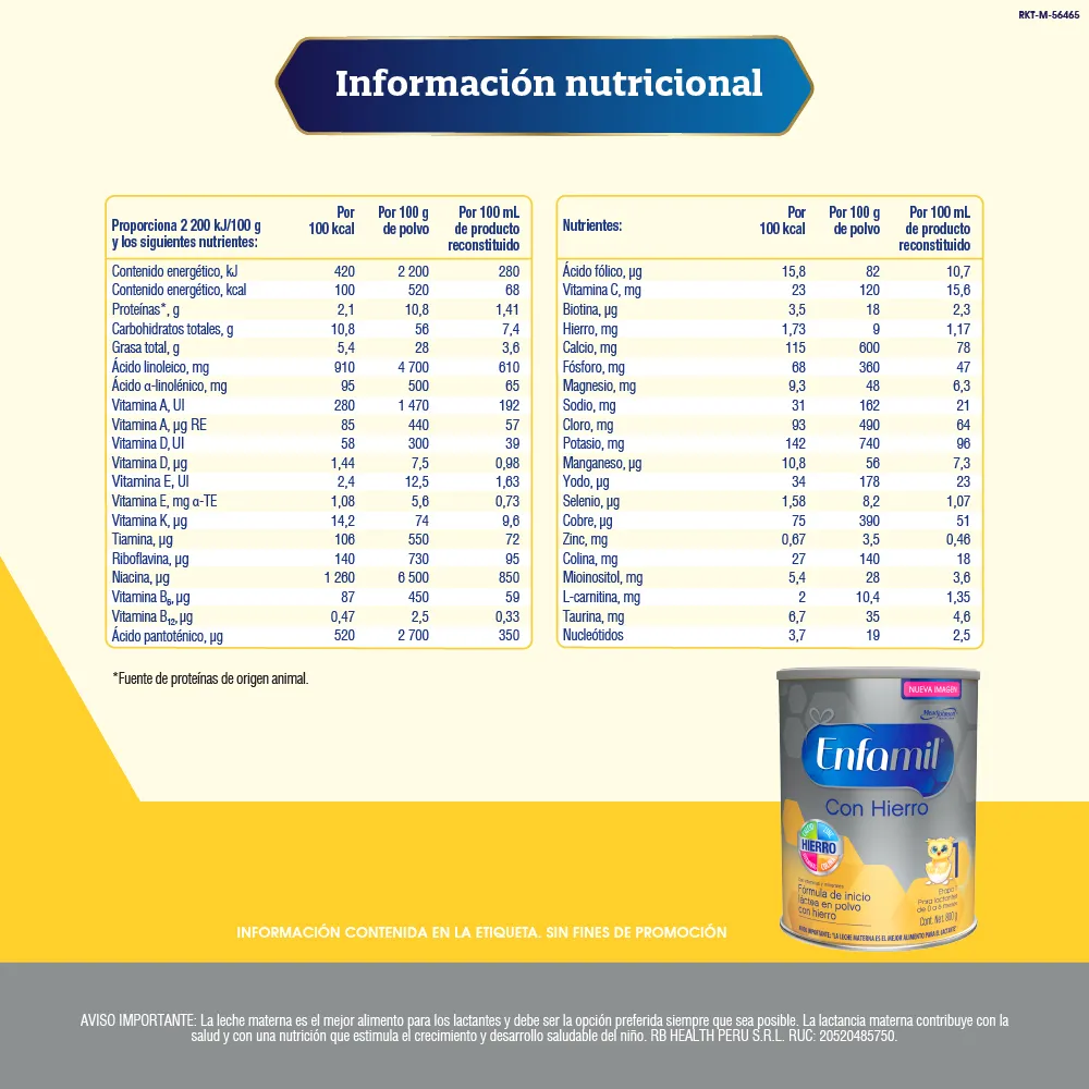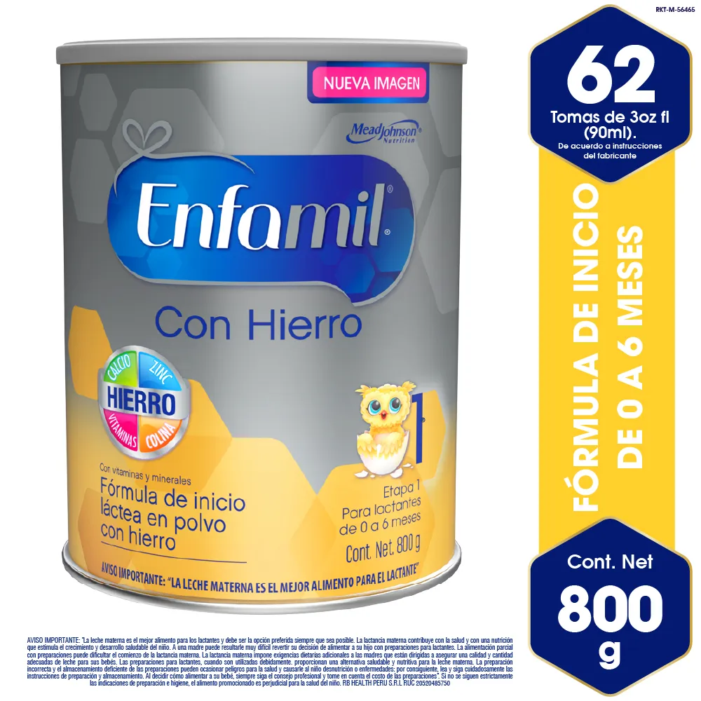 Fórmula de inicio láctea en polvo con Hierro para lactantes de 0 a 6 meses.