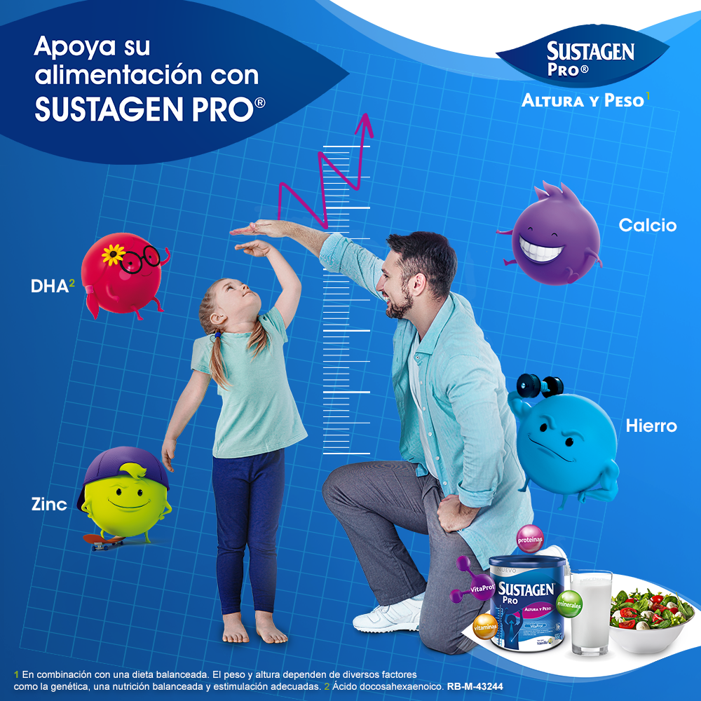 Alimento en polvo con proteínas, vitaminas y minerales que ayudan a apoyar la ganancia saludable de altura y peso de tu hijo*