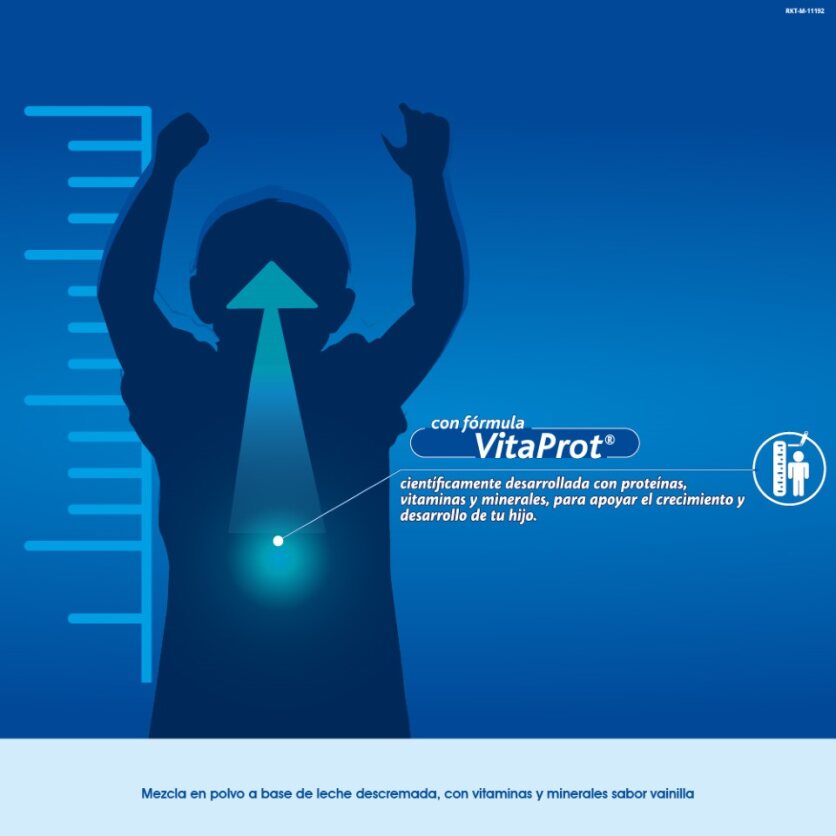 - Exclusiva fórmula Vitaprot®, que proporciona una mezcla equilibrada de proteínas y carbohidratos , así como vitaminas y minerales que ayudan a complementar las necesidades de nutrición para apoyar el crecimiento adecuado de tu hijo.